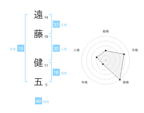 遠藤 健五さんの天格は33画の4点!