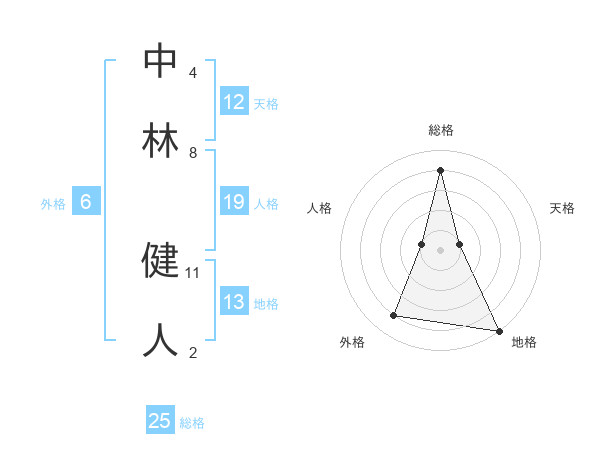 中林 健人さんの総格は25画の4点!