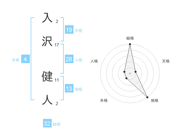 入沢 健人さんの総格は32画の5点!