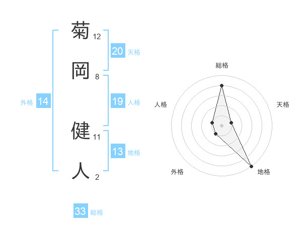 菊岡 健人さんの総格は33画の4点!