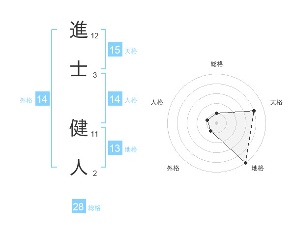 進士 健人さんの天格は15画の4点!