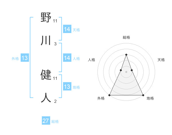野川 健人さんの総格は27画の3点!