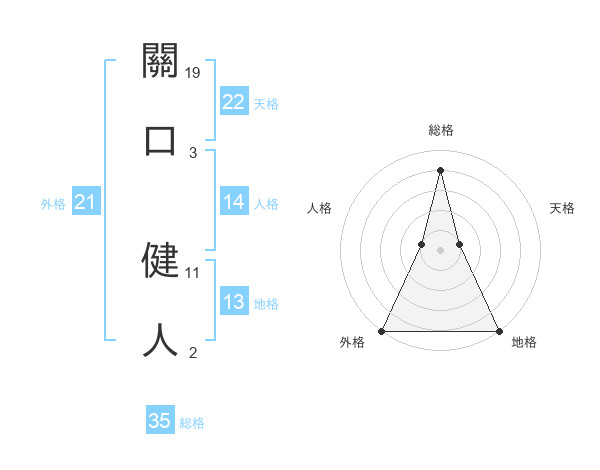 關口 健人さんの天格は22画の1点!