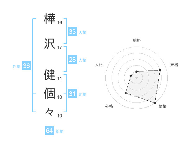 樺沢 健個々さんを姓名の画数から五運を鑑定