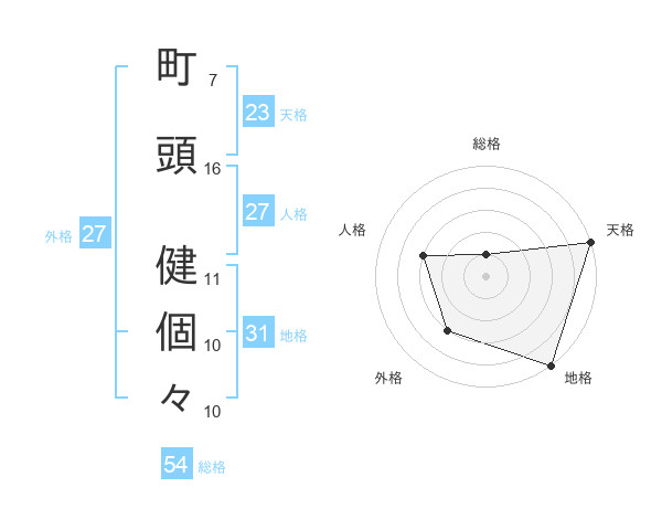 町頭 健個々さんの総格は54画の1点!