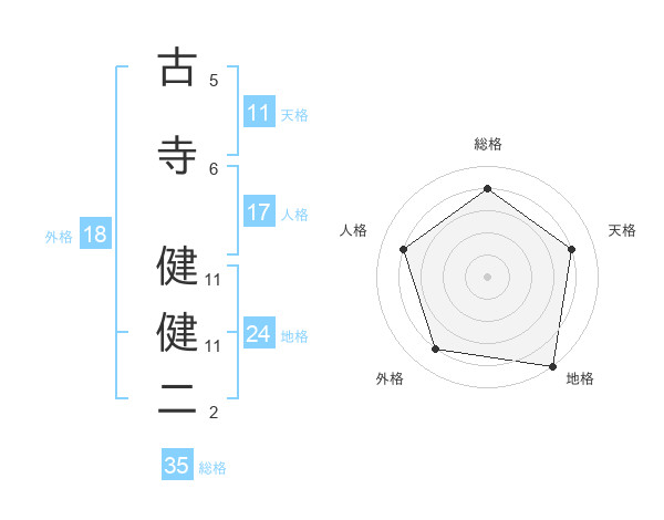 古寺 健健二さんを姓名の画数から五運を鑑定