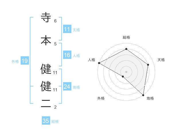寺本 健健二さんを姓名の画数から五運を鑑定