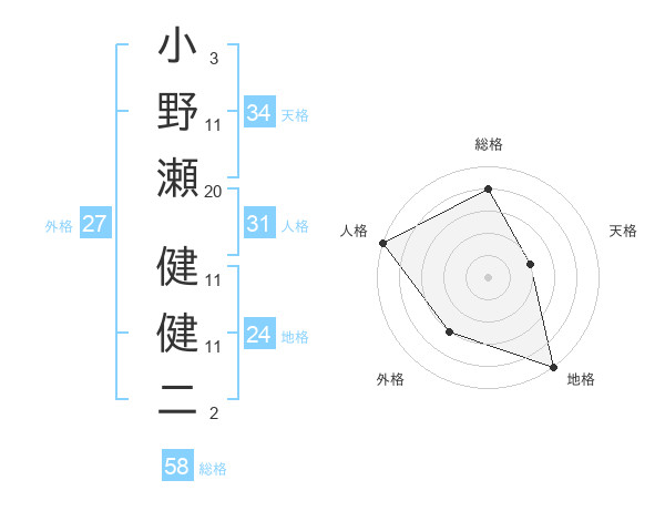 小野瀬 健健二さんの総格は58画の4点!