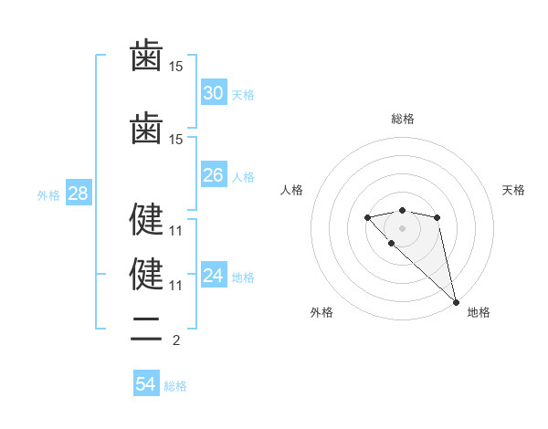 歯歯 健健二さんの天格は30画の2点!