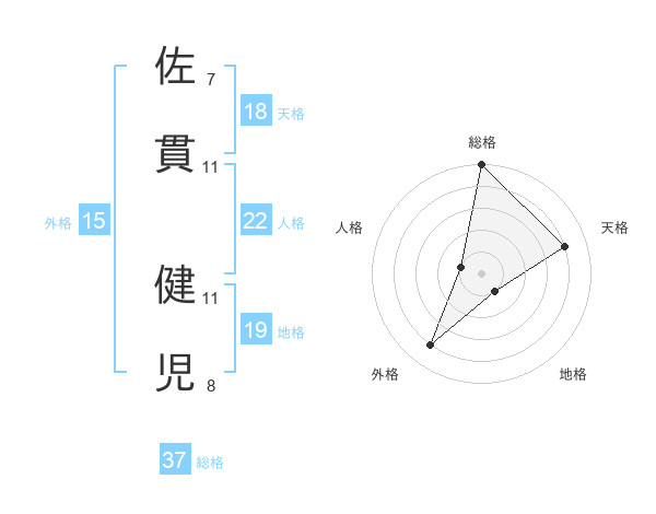 佐貫 健児さんの総格は37画の5点!