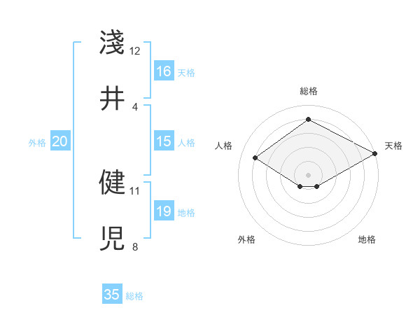 淺井 健児さんの天格は16画の5点!