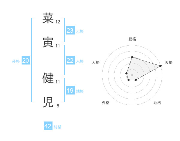 菜寅 健児さんを姓名の画数から五運を鑑定