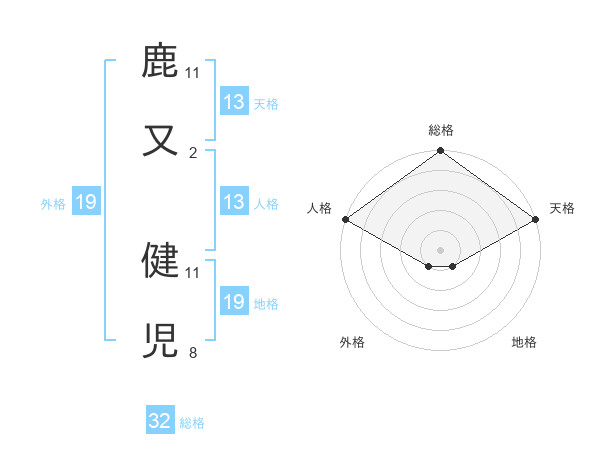 鹿又 健児さんを姓名の画数から五運を鑑定