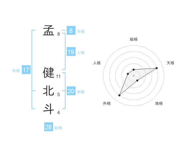 孟 健北斗さんの天格は8画の4点!