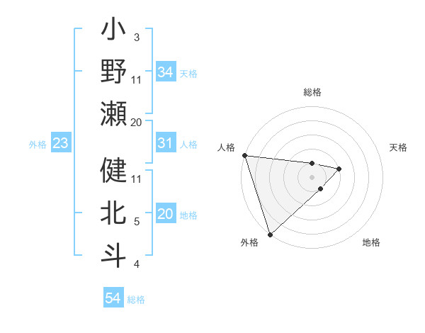 小野瀬 健北斗さんを姓名の画数から五運を鑑定