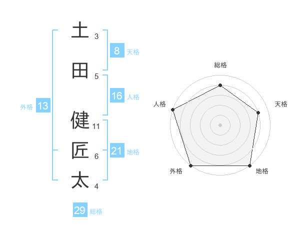土田 健匠太さんを姓名の画数から五運を鑑定