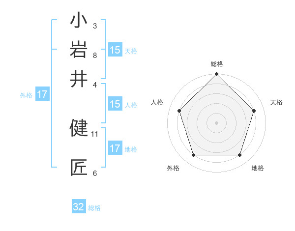 小岩井 健匠さんを姓名の画数から五運を鑑定