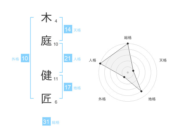 木庭 健匠さんを姓名の画数から五運を鑑定