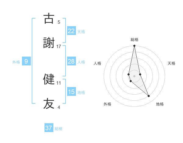 古謝 健友さんの総格は37画の5点!