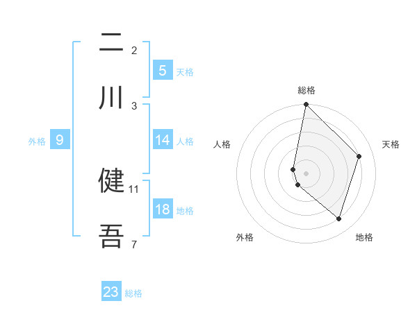 二川 健吾さんの総格は23画の5点!