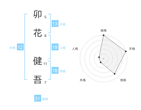卯花 健吾さんの総格は31画の5点!