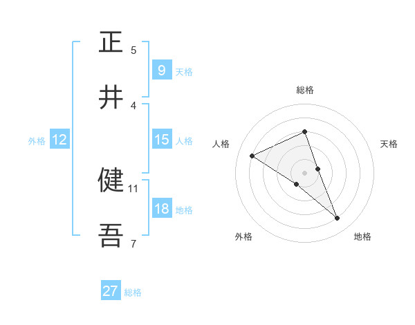 正井 健吾さんの総格は27画の3点!
