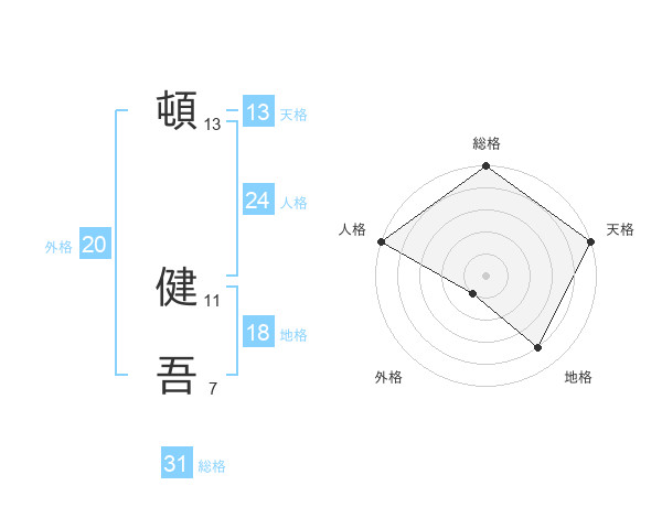 頓 健吾さんの総格は31画の5点!