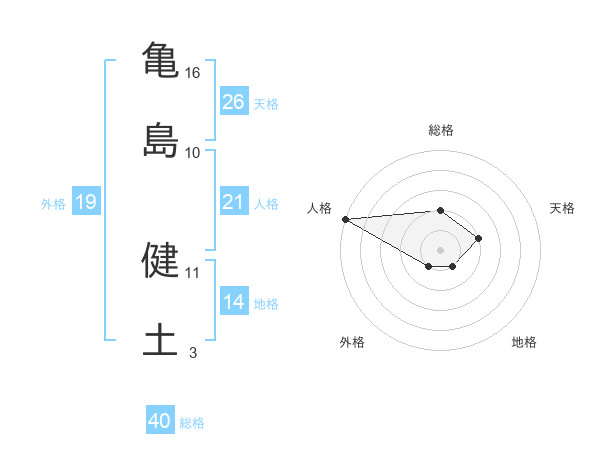 亀島 健土さんの総格は40画の2点!
