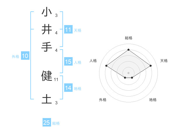 小井手 健土さんの総格は25画の4点!