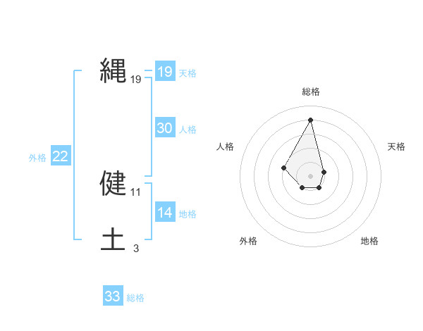縄 健土さんの総格は33画の4点!