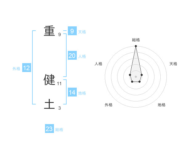 重 健土さんの総格は23画の5点!