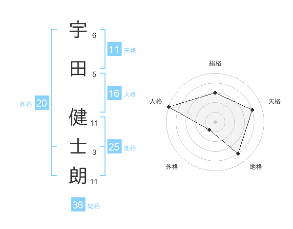 宇田 健士朗さんの総格は36画の3点!