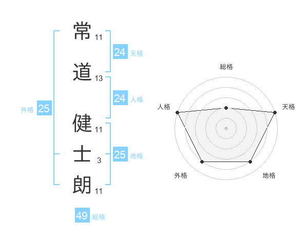 常道 健士朗さんを姓名の画数から五運を鑑定
