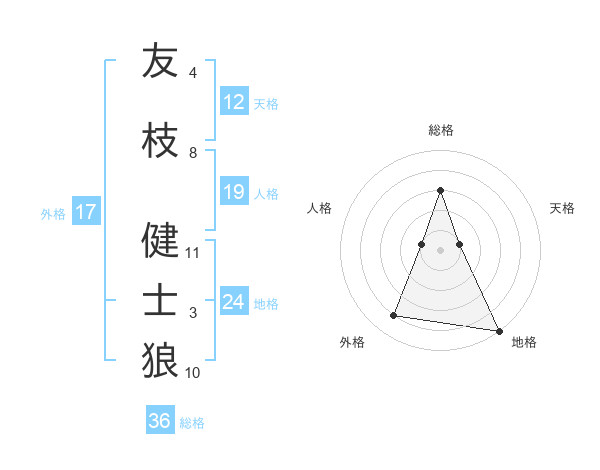 友枝 健士狼さんを姓名の画数から五運を鑑定