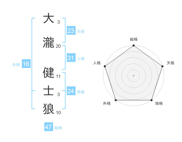 大瀧 健士狼さんを姓名の画数から五運を鑑定