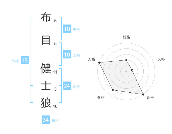 布目 健士狼さんを姓名の画数から五運を鑑定