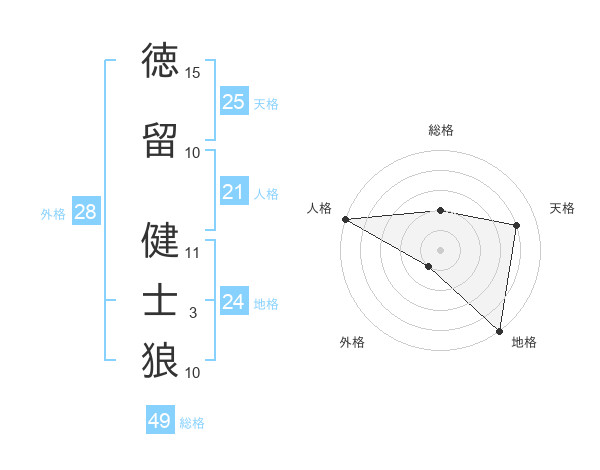 徳留 健士狼さんを姓名の画数から五運を鑑定