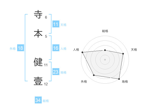 寺本 健壹さんを姓名の画数から五運を鑑定