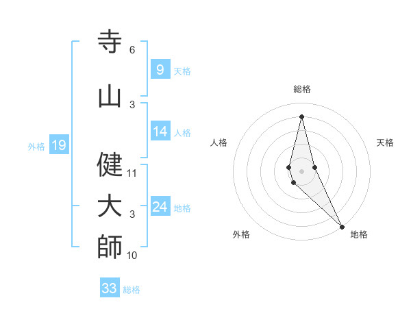 寺山 健大師さんの地格は24画の5点!