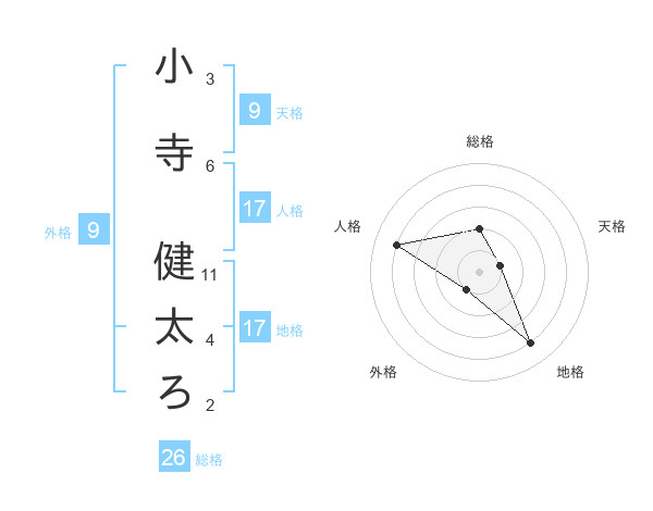 小寺 健太ろさんを姓名の画数から五運を鑑定