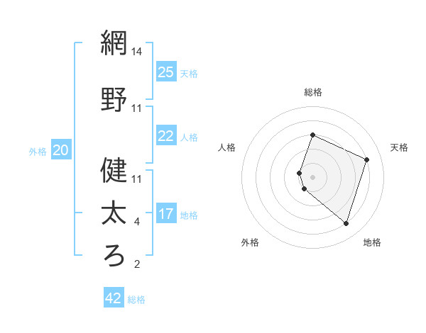 網野 健太ろさんを姓名の画数から五運を鑑定