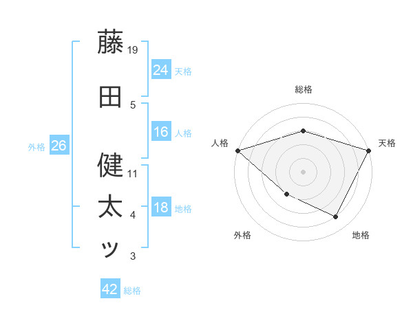 藤田 健太ッさんの天格は24画の5点!