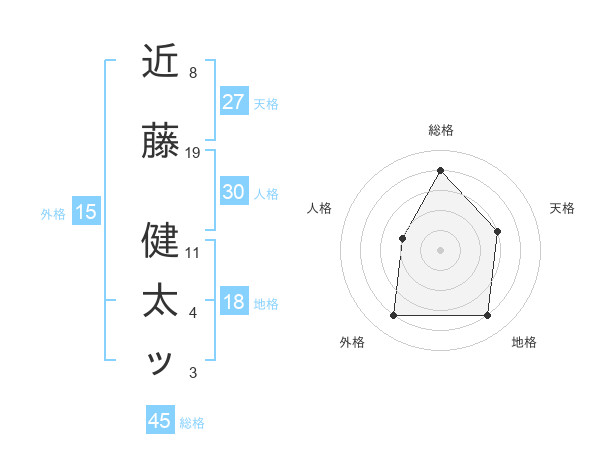 近藤 健太ッさんを姓名の画数から五運を鑑定