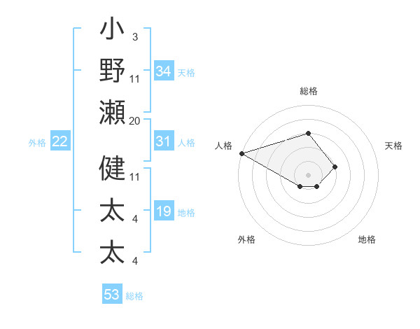 小野瀬 健太太さんを姓名の画数から五運を鑑定