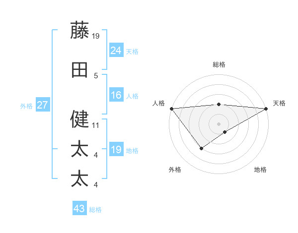 藤田 健太太さんを姓名の画数から五運を鑑定