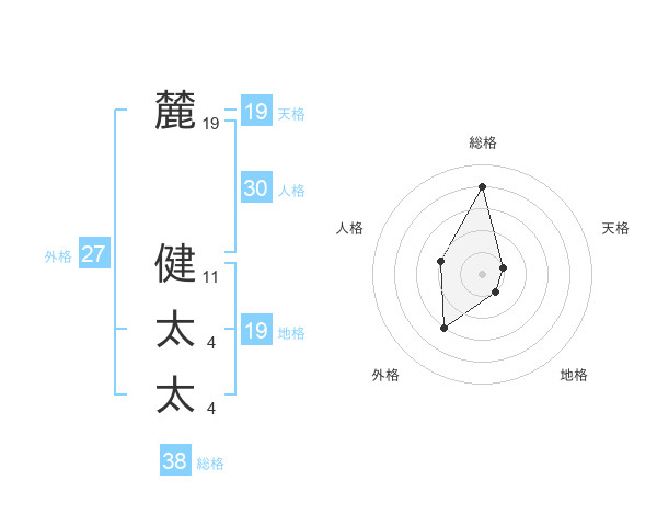麓 健太太さんの総格は38画の4点!
