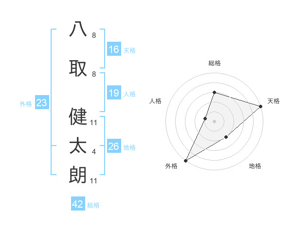 八取 健太朗さんを姓名の画数から五運を鑑定