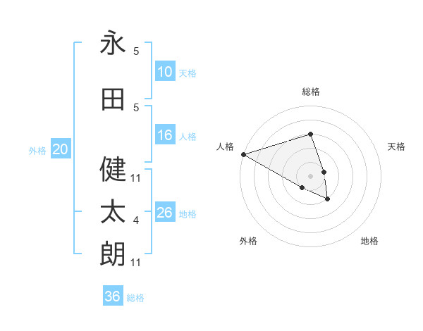 永田 健太朗さんを姓名の画数から五運を鑑定