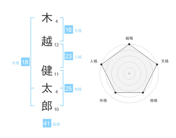 木越 健太郎さんを姓名の画数から五運を鑑定