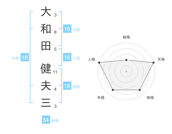 大和田 健夫三さんの総格は34画の2点!